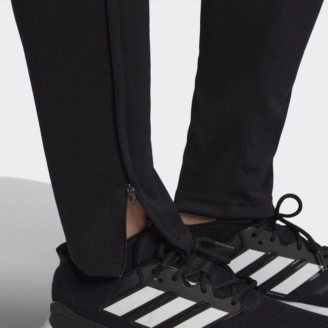 As pernas afuniladas têm zíperes no tornozelo para facilitar na hora de vestir e tirar.