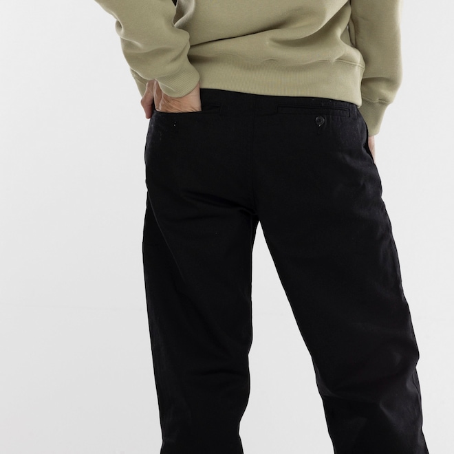 Uma peça versátil que une conforto e funcionalidade com cós ajustado por botão e zíper, além de passante pra cinto.
