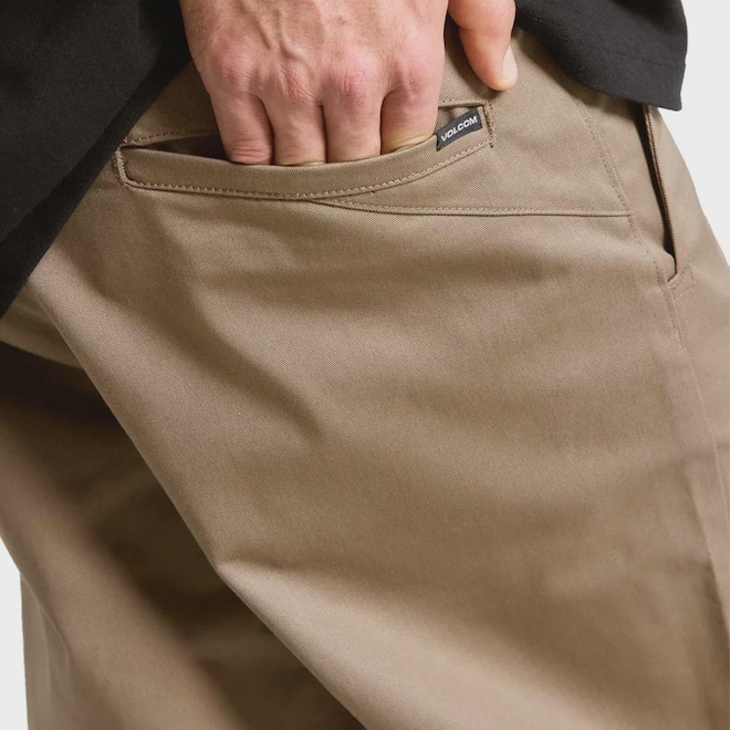 Apresentamos a Frickin Skate Chino, o ultradurável Stone Made do Frickin Modern Stretch Chino. Com o Frickin Skate Chino dobramos o peso do tecido de sarja de algodão da calça que é mais grosso e durável, abrimos o caimento para ficar um pouco mais amplo e aumentamos a abertura da perna para 18". Claro, você pode esperar o mesmo ajuste confiável e sensação de nossas calças normais e detalhes exclusivos, como a parte assimétrica Volcom.
