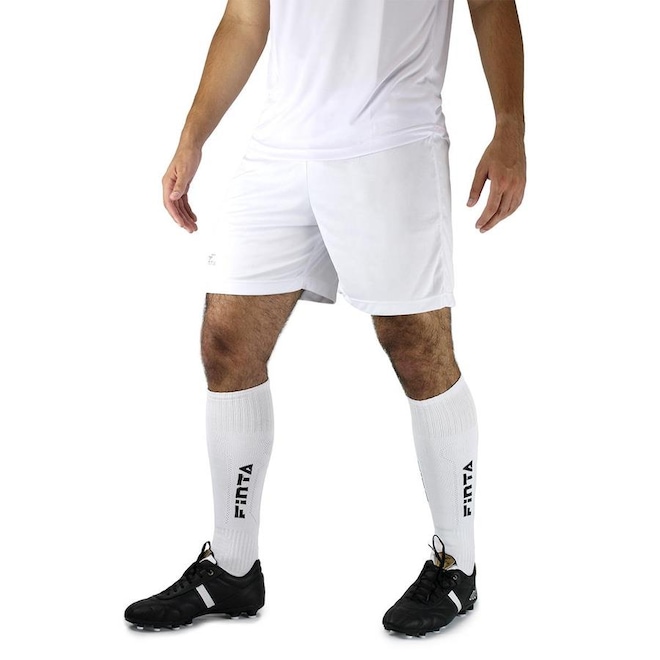 Calção de Futebol Profissional Finta Togo - Masculino é ideal para seus treinos e partidas diários. Possui elástico com ajuste por cordão e forro interno estilo sunga. Além disso ele é confeccionado em poliéster, conferindo a ele leveza e secagem rápida.