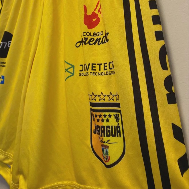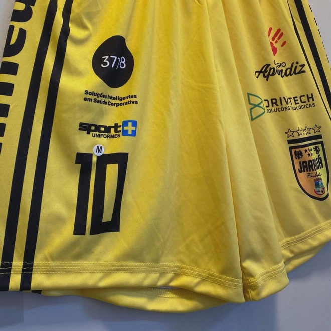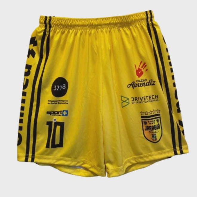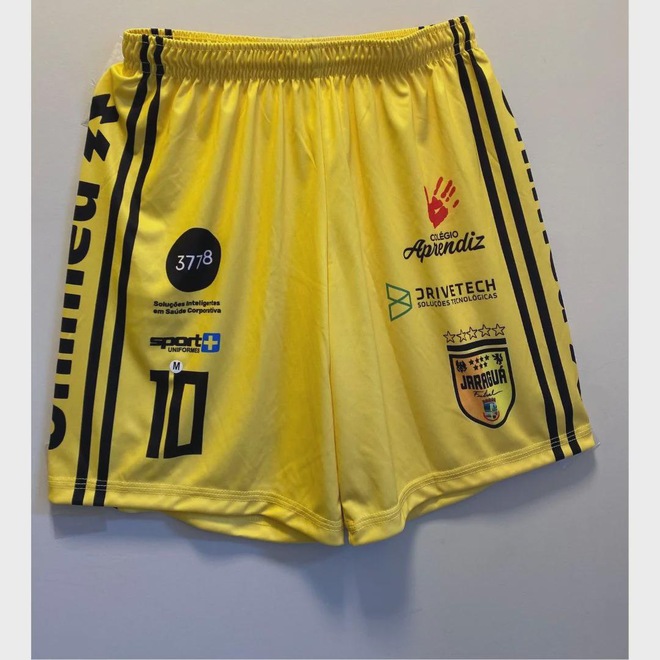 Confeccionado em poliéster, o tecido proporciona leveza, ventilação e secagem rápida. A modelagem foi pensada para garantir liberdade total de movimentos, sem comprometer o caimento e a firmeza durante o uso. É o calção oficial da equipe Jaraguá Futsal, com acabamento de alta qualidade e visual esportivo moderno.