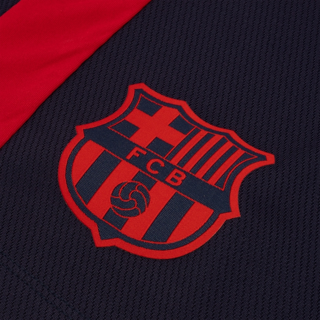 O design moderno com recortes estratégicos traz mais mobilidade e aquela pegada esportiva que só os torcedores do Barça entendem. Ideal pra bater bola, correr ou simplesmente curtir o conforto com o escudo do seu time do coração.