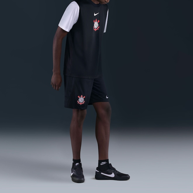 O calção do Corinthians 2025 Nike Masculino une identidade alvinegra com tecnologia de performance para quem leva o manto também na parte de baixo.