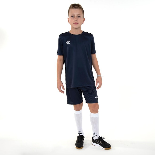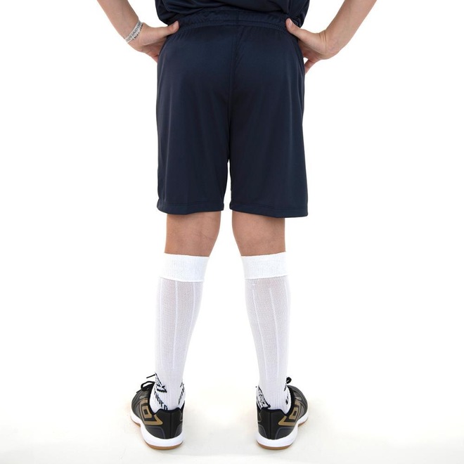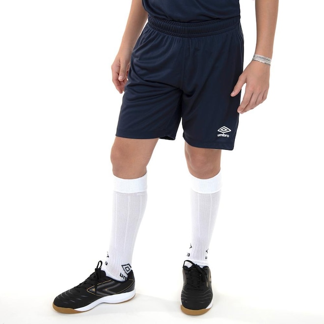 Calção juvenil confeccionado em 100% poliéster. Modelagem regular com cós elástico tombado de 4,5 cm. Possui cordão de ajuste com amarração interna e canaleta pespontada no cós, gancho com costura reforçada e logo Umbro contrastante em termo aplicado na parte frontal esquerda próximo à barra.Comprimento total: 39 cm.ref: M15FXU