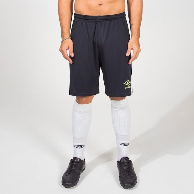 O calção Umbro Diamond Relief é confeccionado em tecido 100% poliéster. O cós possui elástico e cordão de ajuste para um ótimo caimento. Possui recorte com tecido furadinho na lateral. PRETO,BRANCOref: M1010I