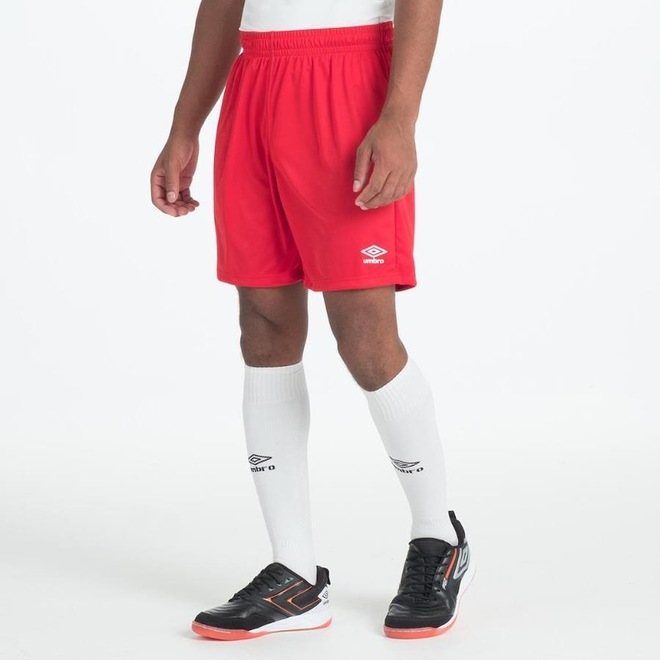Calção masculino confeccionado em malha texturizada de poliéster. Possui cós tombado com elástico, canaleta pespontada e cordão de ajuste com amarração interna; gancho com costura reforçada e logo Umbro em termo aplicado na parte frontal esquerda próximo à barra. Comprimento total: 44 cm.ref: M14H28