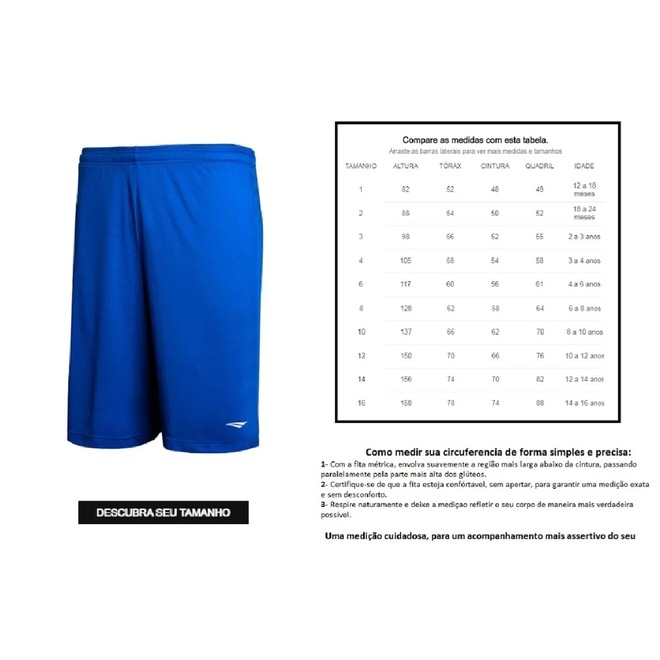 - Cintura: Tam 08: 32cm/ Tam 10: 33cm/ Tam 12: 34cm /Tam 14: 5cm