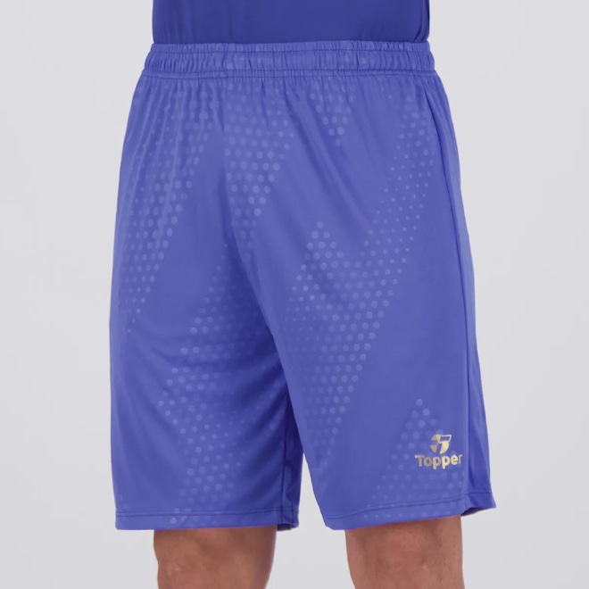 Composição: 100% Poliéster Ajuste: Elástico e cordão Cor predominante: Azul Indicado para: Futebol Gênero: Masculino Origem: Nacional Bolsos: Não Forro: Não Dimensões aproximadas (A x L): P: 47 x 37 cm M: 49 x 39 cm G: 50 x 42 cm GG: 52 x 46 cm