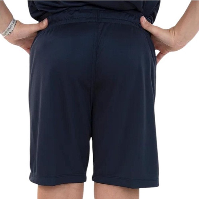 Calção juvenil confeccionado em 100% poliéster. Modelagem regular com cós elástico tombado de 4,5 cm. Possui cordão de ajuste com amarração interna e canaleta pespontada no cós, gancho com costura reforçada e logo Umbro contrastante em termo aplicado na parte frontal esquerda próximo à barra.