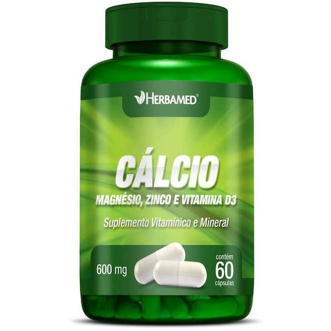Suplemento de Magnésio, Cálcio, Zinco e Vitamina D3 em cápsulas.