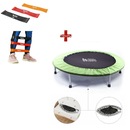Mini Band (faixa elástca circular) - Leve, média e forte. ? 01 trampolim dobrável com 36 molas de aço. ? 01 Manual. ? 01 Capa ou saia de proteção para molas de mini jump trampolim na cor verde. Obs: Produto já vem pronto para abrir e usar (as molas já estão conectadas na lona)