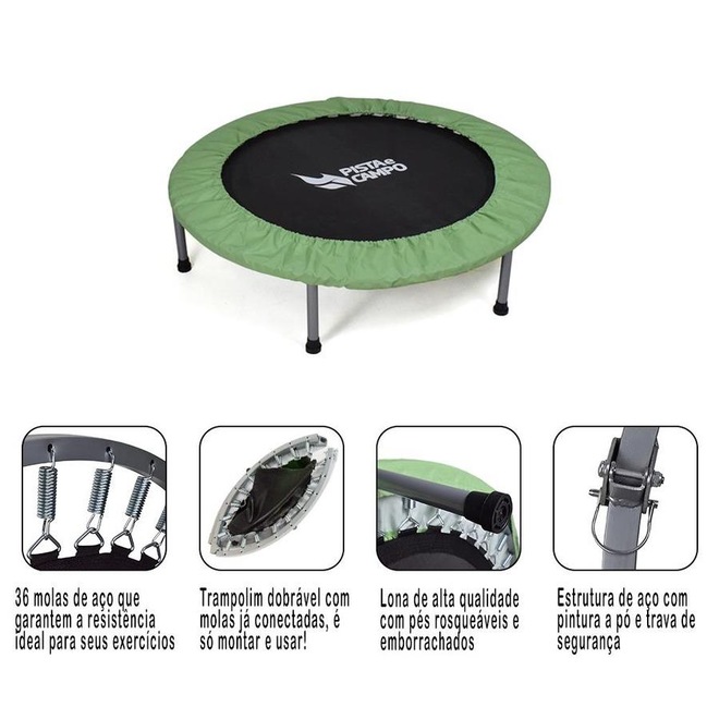 Mini Cama Elástica de Ginástica Jump Trampolim PISTA E CAMPO de 36 molas de aço e 8 linhas de costura: é uma das melhores e mais divertidas maneiras de queimar calorias.