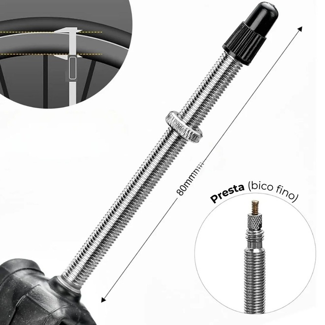 - Tipo de válvula: Presta (bico fino) de 80 mm