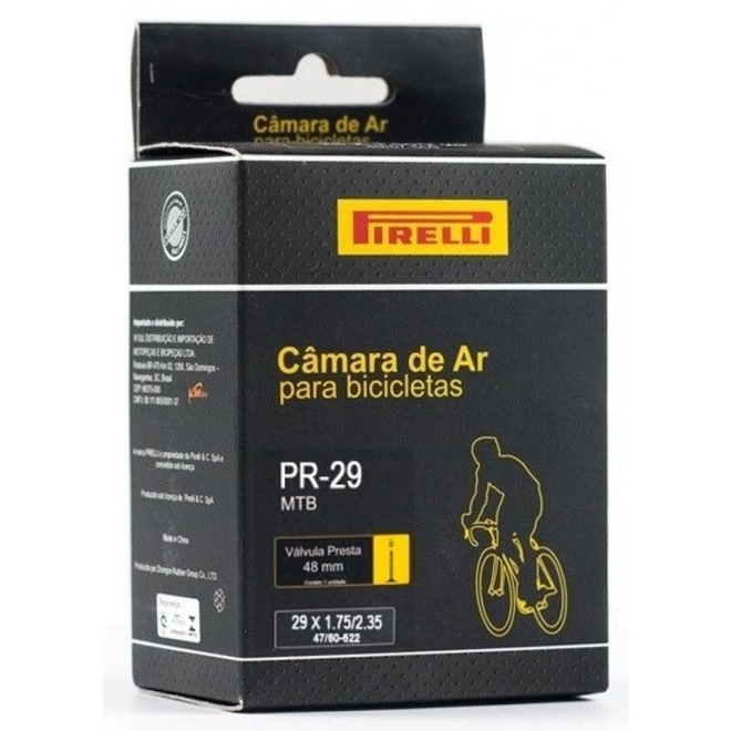 Câmara de ar Pirelli para bicicletas MTB Aro 29" compatível com pneus 29 x 1.50 - 2.40", com válvula Presta (fina) 48mm.