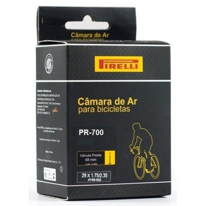 Câmara de ar Pirelli para bicicletas híbridas 700c (Aro 700) compatível com pneus 700c x 28 - 45c, com válvula Presta (fina) 48mm.