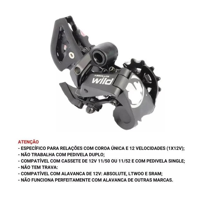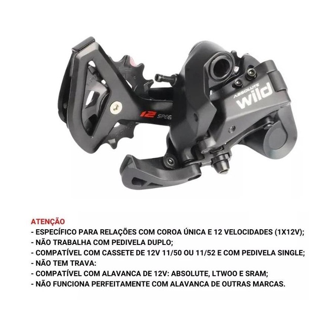Câmbio Traseiro Bike 12V Absolute Wild 2 1X12V P/ K7 11/50 11/52