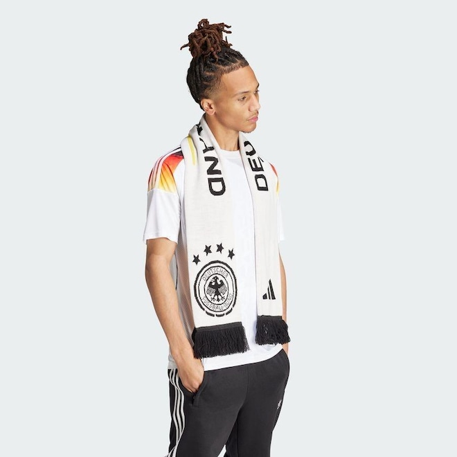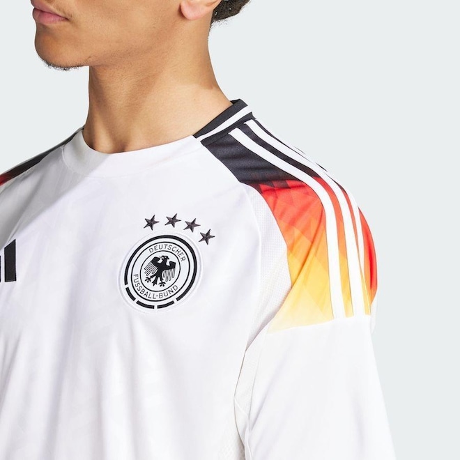 - Sobre o produto - Camisa 1 da Alemanha 24 adidas - Masculina- Sintonizando o espírito do futebol alemão. Essa camisa adidas da Alemanha reúne todos os símbolos dos quatro vezes campeões mundiais. O design inspirado nas penas de águia enfeita os ombros, enquanto detalhes em alto-relevo retirados do logo da DFB se repetem na parte frontal. Feita para um suporte confortável, essa camisa conta com tecido AEROREADY para controle de umidade e com um escudo costurado. Esse produto é 100% feito com materiais reciclados. Ao escolher o reciclado, podemos reutilizar materiais já criados, o que ajuda a reduzir o desperdício e a nossa dependência de recursos finitos, além de reduzir a pegada dos produtos que fabricamos. - ref: M13NV1