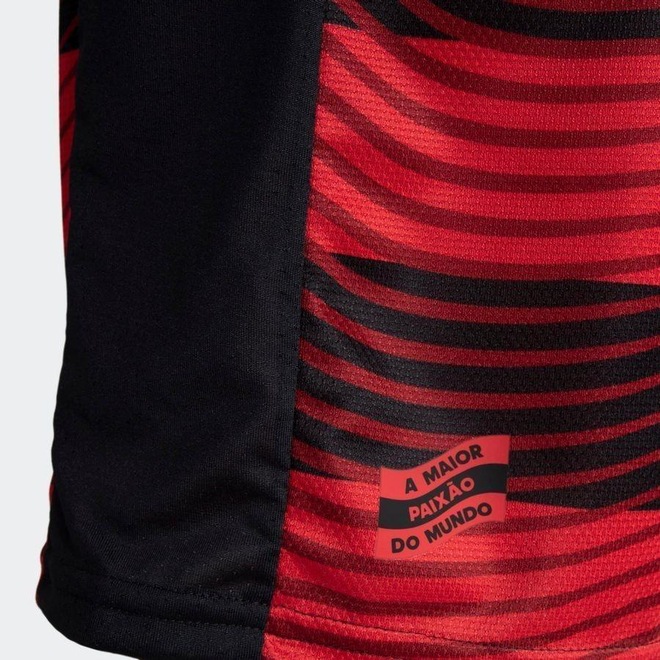 O fundo em aros nesta camisa de futebol adidas do Flamengo ganha vida com uma estampa ondulada inspirada no mar de bandeiras que agitam o Estádio do Maracanã.