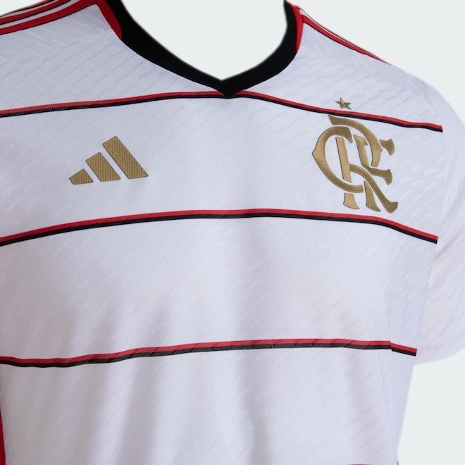 - Sobre o produto - Camisa 2 do Flamengo 23/24 Authentic adidas - Masculina- Clean e clássica. - Esta regata adidas do segundo uniforme do CR Flamengo foi criada para manter os torcedores confortáveis enquanto torcem pelo time. - Por trás do design atemporal, o tecido AEROREADY que remove o suor garante a autoconfiança, não importa o que aconteça no campo de futebol. - O escudo premium bordado deixa claro para quem vai a sua torcida. Feito 100% de materiais reciclados, este produto representa apenas uma das nossas soluções para ajudar a acabar com os resíduos plásticos. - ref: M0XYIF