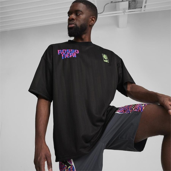 A cápsula FtblNrgy tem como objetivo trazer a energia do campo de futebol para o seu dia a dia nas ruas. Então, represente o visual do AC Milan onde quer que você vá com a camisa oversized com uma estampa bacana na frente e o icônico brasão do clube.