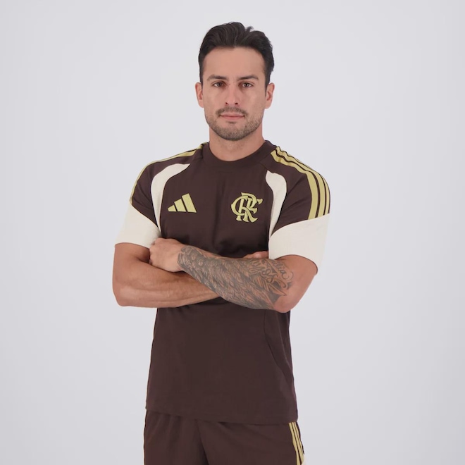 Composição: 100% AlgodãoCor predominante: MarromIndicado para: CasualOrigem: ImportadaEscudo: BordadoGênero: MasculinoClube: FlamengoManga: CurtaGola: CarecaModelagem: RegularDimensões aproximadas (A x L):P (S): 73 x 47 cmM (M): 74 x 49 cmG (L): 76 x 54 cmGG (XL): 78 x 59 cmEG (2XL): 80 x 64 cm