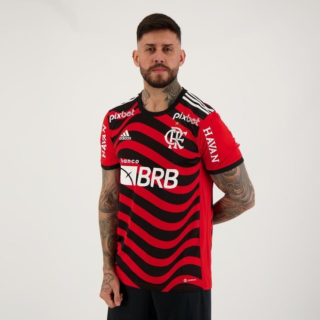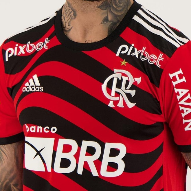 A maior festa do mundo! A adidas lança a terceira camisa do Flamengo para 2022, o manto faz homenagem à torcida rubro-negra e traz listras onduladas em toda extensão do tecido que faz alusão as arquibancadas, suas bandeiras e seu movimento.