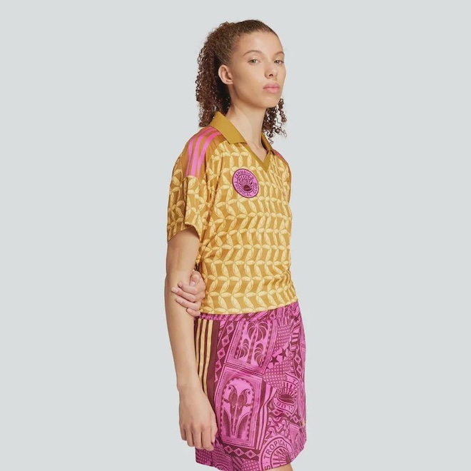 Transporte-se para um oásis no deserto com esta camisa adidas x FARM Rio. Ela combina as estampas tropicais características da FARM Rio com a estética do ikat. A modelagem folgada e cropped permite total liberdade de movimentos. CLIMACOOL absorve e dispersa o suor para uma performance fresca, seca e sem distrações. CLIMACOOL ajuda você a controlar o suor com materiais que removem e controlam o suor rapidamente. Suas fibras de secagem rápida dão a você uma sensação de pele fresca. Este produto é 100% feito com materiais reciclados. Ao escolher o reciclado, podemos reutilizar materiais já criados, o que ajuda a reduzir o desperdício e a nossa dependência de recursos finitos, além de reduzir a pegada dos produtos que fabricamos.