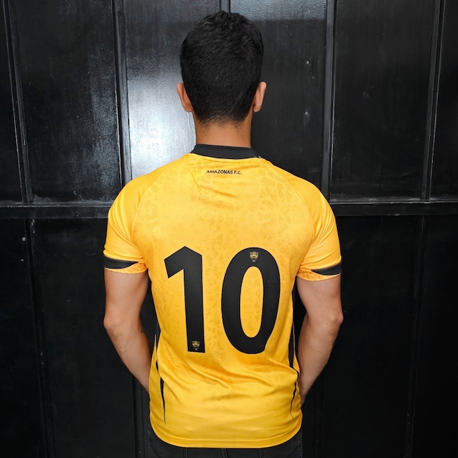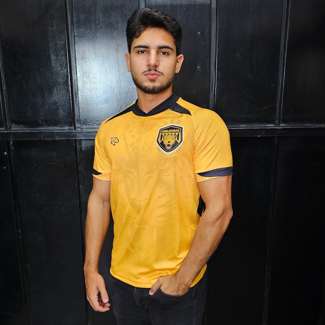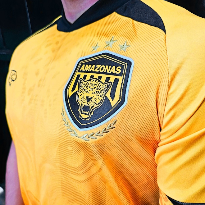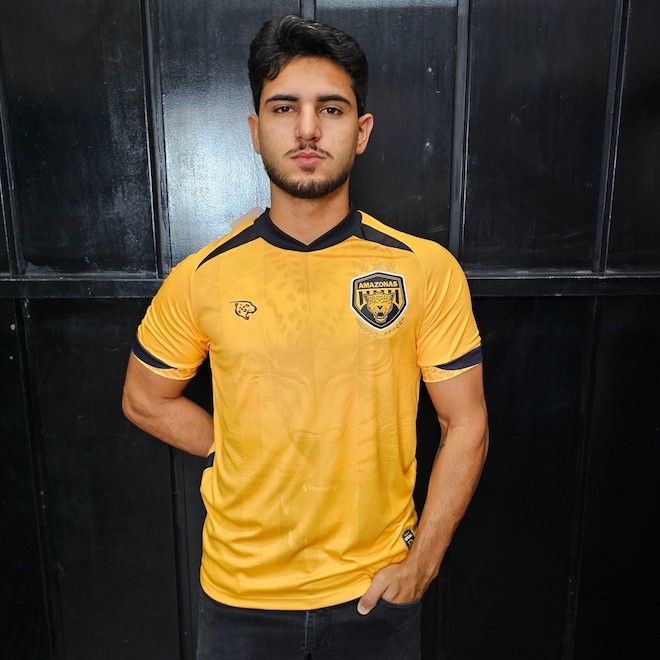A Camisa titular do Amazonas Futebol Clube traz o amarelo como predominante, com faixas verticais em tom sobre tom, e apresenta no corpo a figura de uma onça. O template lembra bastante o antigo da Nike, com o detalhe “cabide” em preto nas clavículas. A cor volta a aparecer na gola, punhos e em faixas laterais.A Onça estampa seu logo em preto no lado direito do peito, enquanto o escudo do Amazonas é aplicado no lado esquerdo, em sua versão atual padrão.