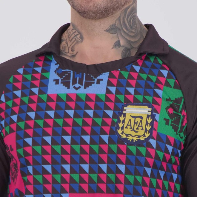 Apesar de não ter sido coroada campeã mundial em 1990, a Argentina protagonizou uma Copa emblemática. Favorita, por ser a atual campeã na época, teve uma fase de grupos mais difícil que o esperado, mas seguiu firme na competição. Já nas oitavas, eliminou seu grande rival Brasil, após uma incrível arrancada de Maradona e um passe açucarado para gol do inesquecível Caniggia. Mais adiante, nas semifinais, eliminou ninguém menos que a anfitriã, a Itália. E, ironicamente, o adversário na final foi o mesmo da Copa do Mundo anterior: a Alemanha. Porém, desta vez, em um jogo cheio de polêmicas, os alemães foram coroados campeões mundiais.Composição: 100% PoliésterCor Predominante: PretaIndicado para: CasualEscudo: BordadoGênero: MasculinoClube: ArgentinaOrigem: NacionalManga: LongaGola: PoloDimensões aproximadas (A x L):P: 70 x 50 cmM: 72 x 52 cmG: 74 x 54 cmGG: 76 x 56 cmEG: 78 x 58 cm