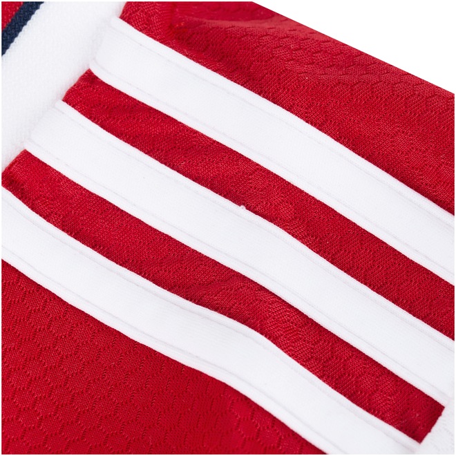 A energia do vermelho toma conta da Camisa Arsenal I 19/20 adidas Infantil com estilo e muito conforto para os fãs mirins do clube inglês usarem nos dias de jogos, treinos esportivos e ocasiões casuais. Com poliéster reciclado em sua composição que demonstra a contribuição da adidas pela sustentabilidade, a Camisa Arsenal 19/20 Infantil apresenta a respirabilidade da tecnologia Climalite®, que mantém uma agradável sensação de corpo seco e confortável nas condições mais quentes. Sua gola em “v” possui elasticidade para facilitar o encaixe com tira em tecido para a proteção contra o atrito da costura. Além disso, o escudo do Arsenal enriquece o visual da peça aliado ao logo da marca bordado que confere a qualidade adidas.