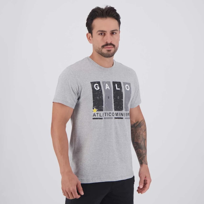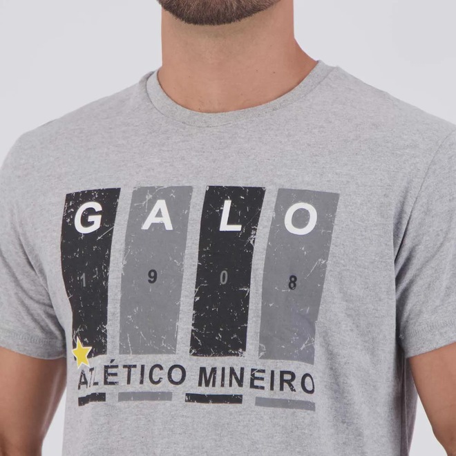 Composição: 88% Algodão e 12% Poliéster Cor predominante: Cinza Clube: Atlético Mineiro Indicado para: Casual Escudo: Estampado Gênero: Masculino Origem: Nacional Manga: Curta Gola: Careca Dimensões aproximadas (A x L): P: 71 x 51 cm M: 73 x 53 cm G: 75 x 55 cm GG: 77 x 57 cm EG: 79 x 59 cm