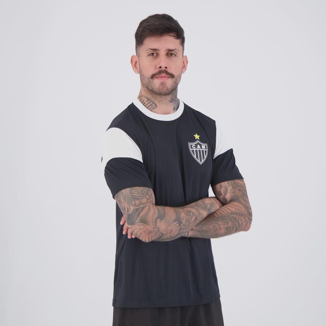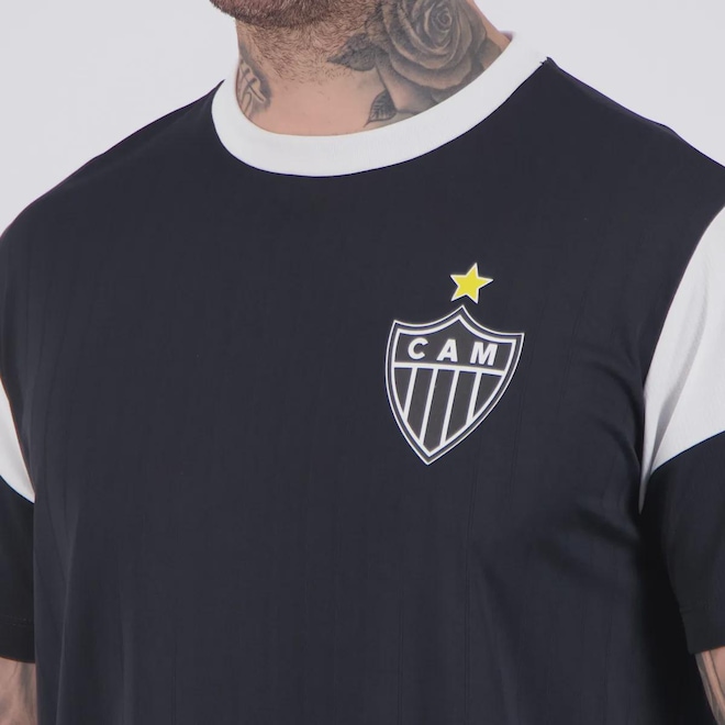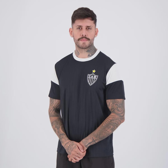 Composição: 100% Poliéster Cor predominante: Preta Clube: Atlético MineiroIndicado para: CasualOrigem: ImportadaEscudo: EstampadoManga: CurtaGola: CarecaDimensões aproximadas (A x L):P: 70 x 55 cmM: 72 x 57 cmG: 74 x 59 cmGG: 76 x 61 cmEG: 78 x 63 cm