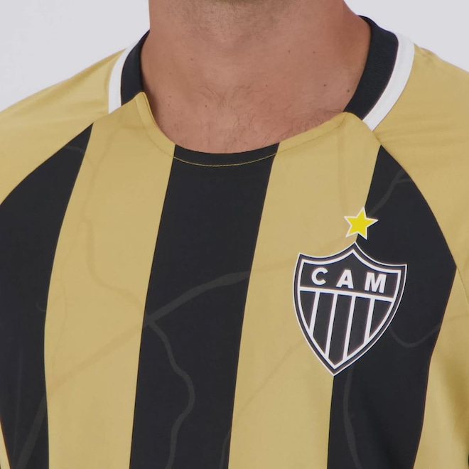 Composição: 100% PoliésterCor predominante: DouradaClube: Atlético MineiroIndicado para: CasualGênero: MasculinoOrigem: NacionalEscudo: EstampadoManga: CurtaGola: CarecaDimensões aproximadas (A x L):P: 70 x 52 cmM: 72 x 54 cmG: 74 x 56 cmGG: 76 x 58 cm