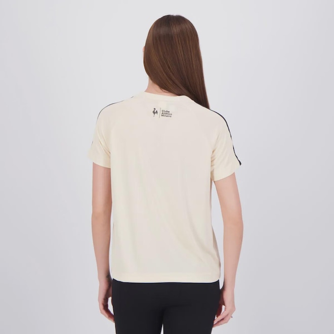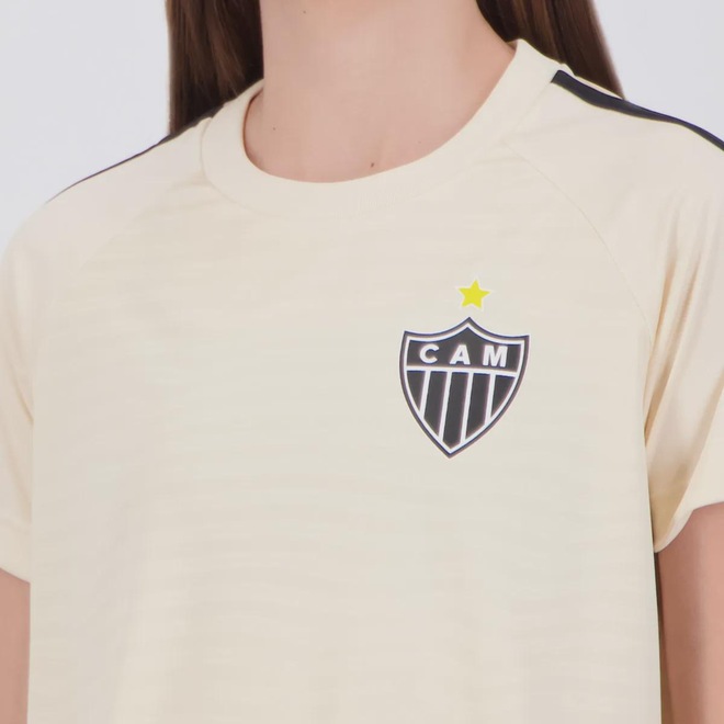 Composição: 100% Poliéster Clube: Atlético Mineiro Cor Predominante: Bege Escudo: Estampado Gênero: Feminino Origem: Nacional Manga: Curta Gola: Careca Dimensões aproximadas (A x L): P: 57 x 45 cm M: 61 x 49 cm G: 63 x 52 cm GG: 66 x 54 cm