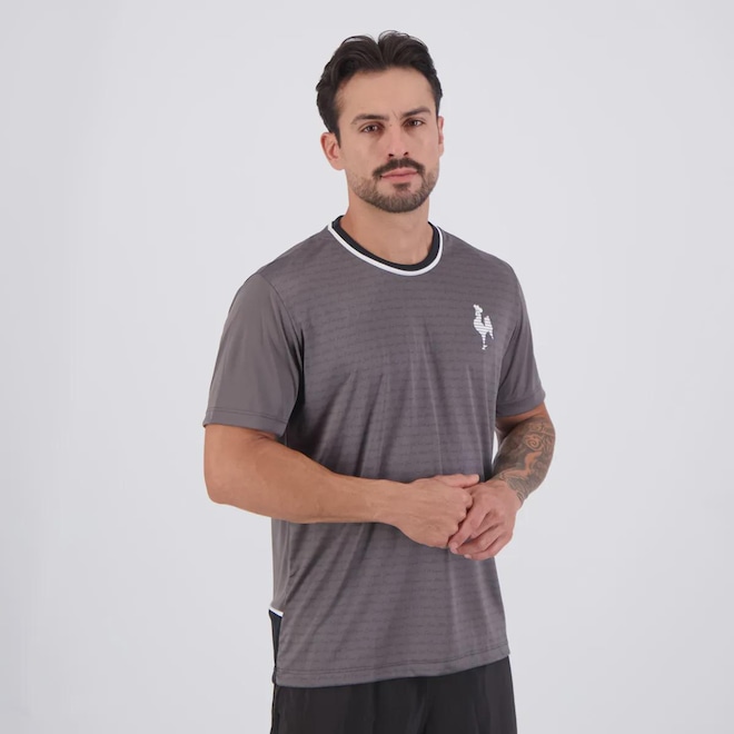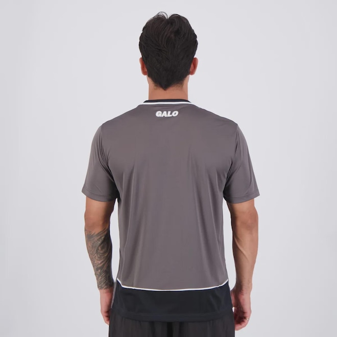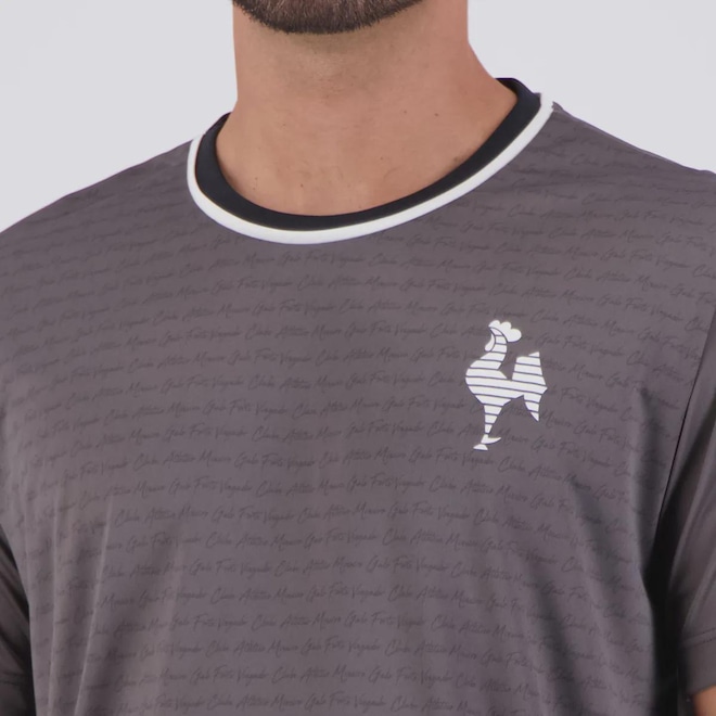 Composição: 100% Poliéster Cor predominante: Cinza Clube: Atlético Mineiro Indicada para: Casual Gênero: Masculino Escudo: Estampado Origem: Nacional Manga: Curta Gola: Careca Dimensões aproximadas (A x L): P (S): 70 x 53 cm M (M): 72 x 55 cm G (L): 74 x 57 cm GG (XL): 76 x 59 cm