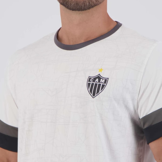 Composição: 100% Poliéster Cor predominante: Branco Clube: Atlético Mineiro Indicado para: Casual Escudo: Estampado Gênero: Masculino Origem: Nacional Manga: Curta Gola: Careca Dimensões aproximadas (A x L): P: 72 x 53 cm M: 74 x 55 cm G: 76 x 57 cm GG: 78 x 59 cm EG: 80 x 61 cm