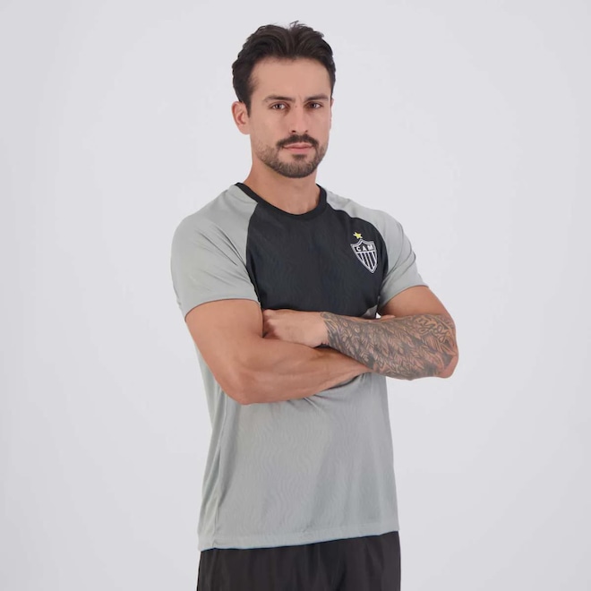 Composição: 100% Poliéster Cor predominante: Cinza Clube: Atlético Mineiro Indicado para: Casual Gênero: Masculino Origem: Nacional Logo: Estampada Manga: Curta Gola: Careca Dimensões aproximadas (A x L): P: 71 x 53 cm M: 73 x 55 cm G: 75 x 57 cm GG: 77 x 59 cm EG: 79 x 61 cm