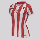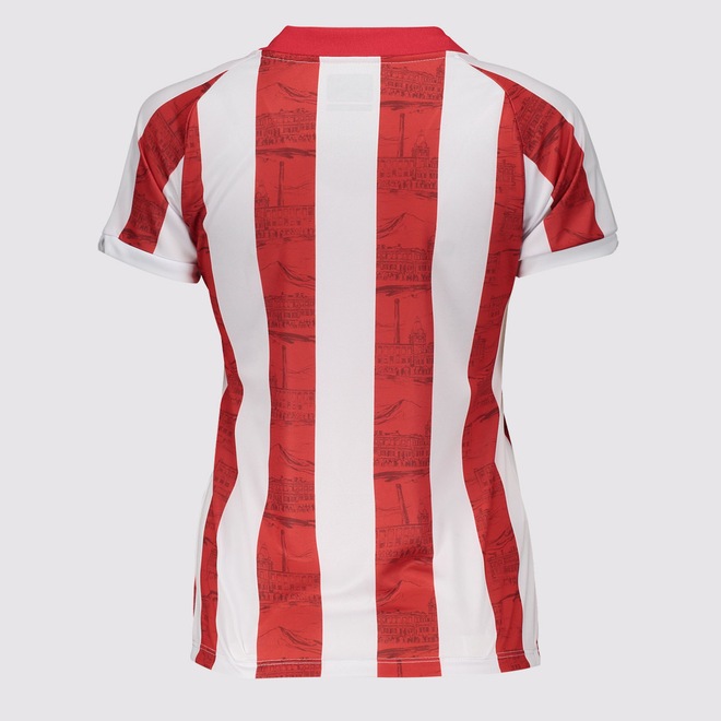 TecnologiasKOMBAT PRO SYTEM®: Técnica autêntica que atribui uma elegância italiana ao design do produto, sustentando-se nas especificidades dos atletas profissionais.Hidroway Protection: Tecido de alta performance com absorção de umidade e secagem rápida, proporcionando melhor conforto e excelente caimento.Composição: 100% PoliésterCor predominante: BrancaModelo: JogadorGênero: Feminino Origem: NacionalEscudo do time: AplicadoLogo da marca: EstampadaLayout: O modelo possui design tradicional com listras verticais em branco e vermelho, com destaque para imagens da Fábrica Bangu nas listras vermelhas.Clube: BanguManga: CurtaGola: CarecaIndicação de uso: Torcer, treinar leve e lifestyle.Cuidados com a peça: Lavar do avesso, evitar alvejante e não passar sobre escudos/estampas.Dimensões Aproximadas (A x L):P: 60 x 43 cmM: 63 x 46 cmG: 65 x 50 cmGG: 67 x 54 cm