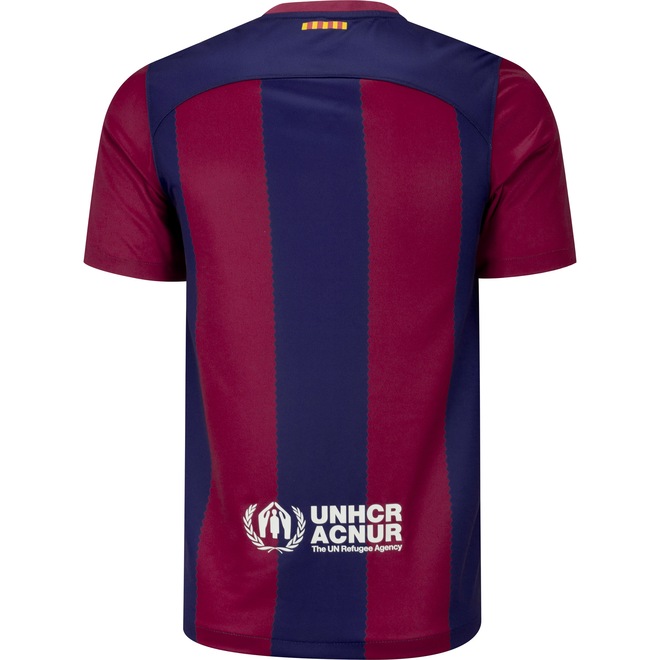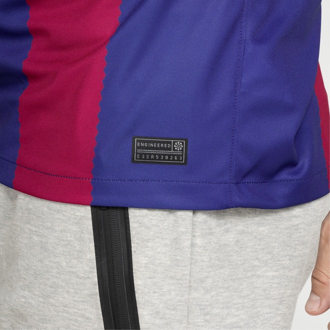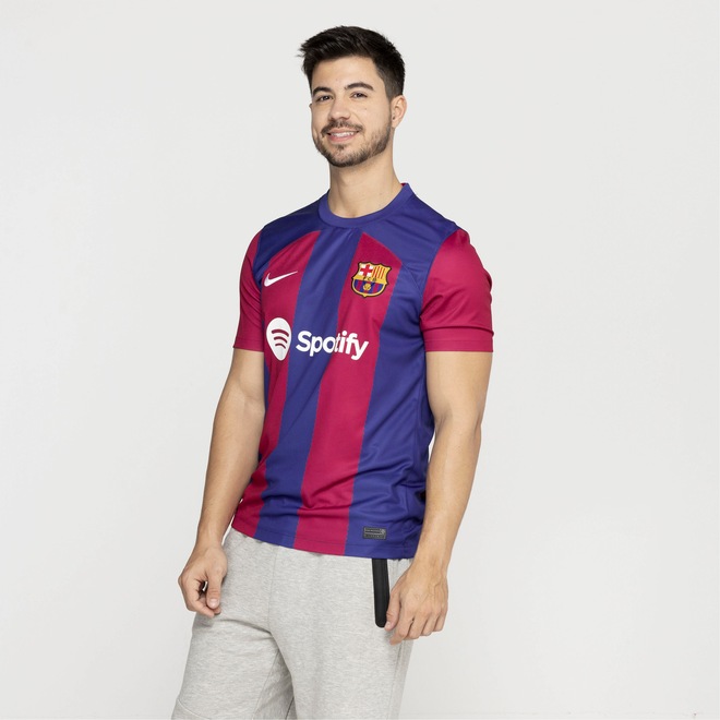 Feita com pelo menos 75% de fibras recicladas para uma pegada mais consciente e sustentável, a Camisa Barcelona I 23 Torcedor possui tecido antissuor com Dri-Fit que mantém o corpo seco e confortável mesmo sob esforço.Apresenta listras nas cores do clube espanhol com um caimento padrão que não limita os movimentos.Na parte interna da gola, a tira em tecido ajuda a diminuir o desconforto do atrito da costura.Conta ainda com o escudo em destaque, o logo swoosh e etiqueta de autenticidade que confere seu padrão de qualidade em cada detalhe.O modelo perfeito para usar em dias de jogos e lifestyle para demonstrar seu favoritismo pelo “Barça”. Não perca a temporada 23 e invista no uniforme I agora mesmo!MOVE TO ZERO (NIKE) - Com o intuito de proteger o futuro do esporte a Nike faz uso de pelo menos 75% de fibras recicladas que reduz o desperdício e o consumo de carbono e lixo para uma pegada mais consciente e sustentável.ref: 982397