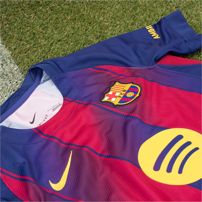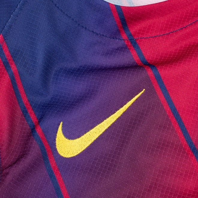 Prepare o futuro craque para brilhar com a autêntica Camisa Barcelona I 25/26 Torcedor Pro Nike Infantil.
