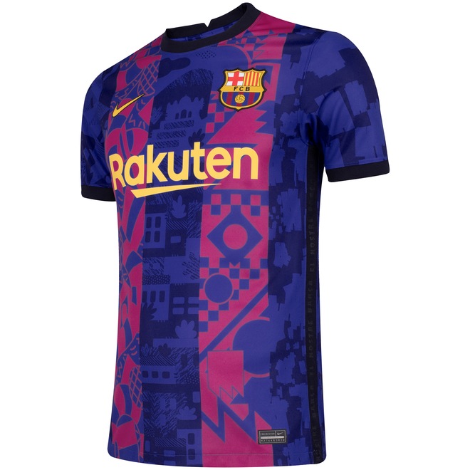 Torça pelo Barcelona com muito estilo com a camisa III masculina. A qualidade da Nike está em cada detalhe, a tecnologia Dri-Fit promove maior respirabilidade e a ação sustentável, MOVE TO ZERO, também está presente. Suas mangas são curtas, gola careca e canelada, estampa personalizada que garantirá excelentes combinações, além do logo ser bordado. Ainda conta com autenticação. Compre já!