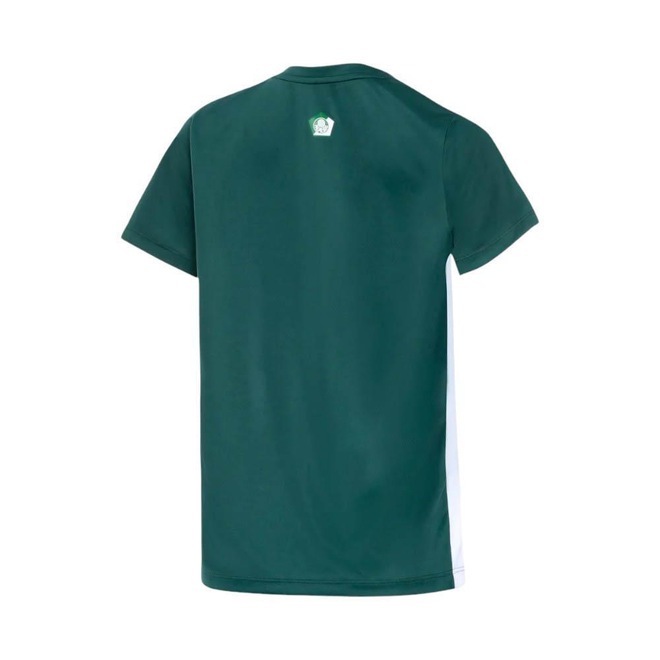 Camisa em tecido liso 100% poliéster com tecnologia Dry, recorte lateral em cor contrastante. Escudo Palmeiras e transfer pentagono termoaplicado.