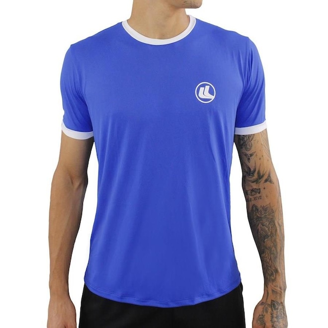 Esta camisa conta com gola careca e mangas curtas, proporcionando maior liberdade de movimentos.