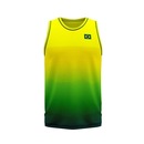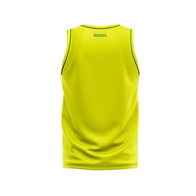 A regata do Brasil produzida em 100% poliéster, leve e macia, com a bandeira do Brasil estampado no peito.