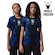 Com o instinto dos predadores, o novo uniforme do Brasil impõe respeito imediato. O padrão em azul royal e preto é complementado por detalhes em verde-água e amarelo, realçando o Jumpman e o icônico escudo da CBF.