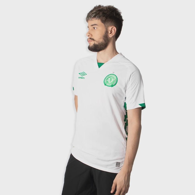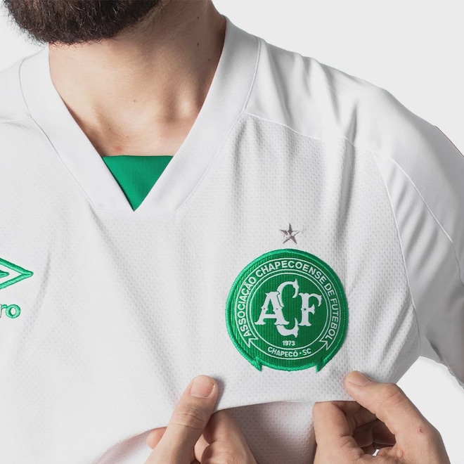- Sobre o produto - Camisa Umbro Chapecoense II 2022 M - A Camisa Umbro Chapecoense II 2022 é a escolha ideal para o torcedor do time. Confeccionada em tecido poliéster, o modelo garante excelente maciez e conforto. Além disso, os novos mantos trazem os tradicionais verde e branco, com detalhes e artes gráficas baseados na história da cidade e na cultura indígena 'Kaingang', nativa da região. Demonstre a sua paixão com a Camisa Umbro Chapecoense II 2021 e adquira agora a sua! #SomosTodosChape - Nome: Camisa Umbro Chapecoense II 2022 - Origem: Nacional - Indicado para: Dia a Dia - Composição: 100% poliéster - Cor predominante: Branco e Verde - Escudo: Bordado - Gola: Careca - Manga: Curta - Peso: 160g (Referente ao tamanho M) - Tamanho aproximado (AxL): Altura x Largura - M: 74 cm x 52 cm - G: 75 cm x 54 cm - GG: 77 cm x 56 cm - Garantia do fabricante: contra defeito de fabricação