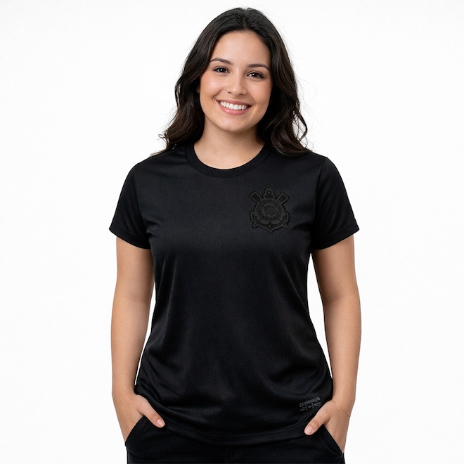 Camisa Corinthians Baby Look All Black Símbolo - Feminino