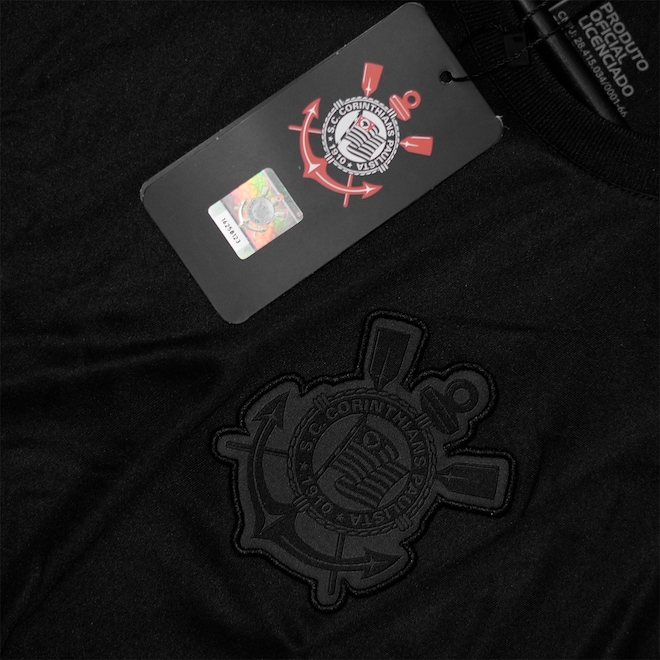 O grande destaque fica por conta do escudo do Corinthians bordado em relevo, trazendo um acabamento premium, discreto e sofisticado no estilo “total black”, deixando a peça elegante e exclusiva. Seja no estádio, na academia ou nas ruas, essa é a camisa perfeita para mostrar seu amor pelo Timão com muito estilo.