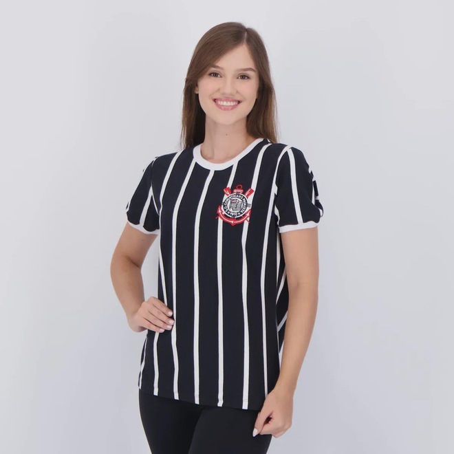 Composição: 96% Algodão e 04% ElastanoCor predominante: PretoIndicada para: CasualClube: CorinthiansOrigem: NacionalGênero: FemininoEscudo: BordadoManga: CurtaGola: CarecaDimensões aproximadas (A x L):P: 63 x 48 cmM: 65 x 50 cmG: 67 x 52 cmGG: 69 x 54 cm