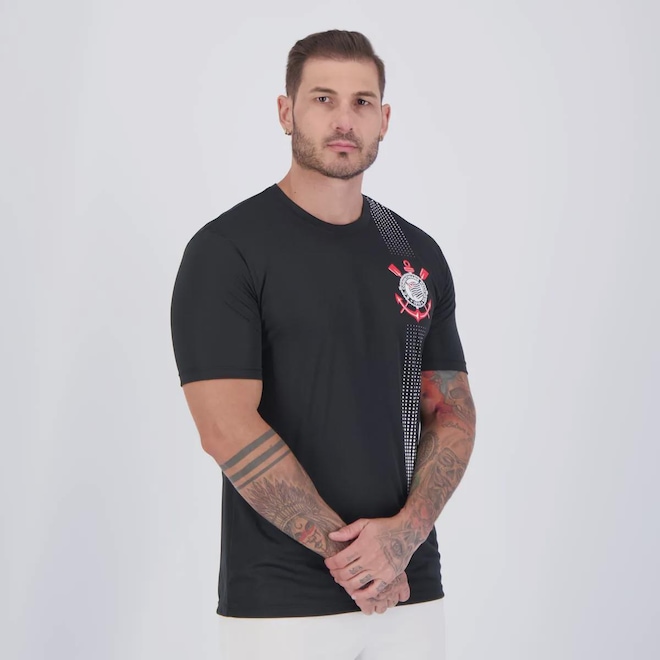 Composição: 100% PoliésterCor Predominante: PretoIndicado para: TreinoGênero: MasculinoOrigem: NacionalLogo: EstampadaManga: CurtaGola: CarecaDimensões aproximadas (A x L):P: 72 x 48 cmM: 74 x 50 cmG: 76 x 52 cmGG: 78 x 54 cmEG (3G): 80 x 56 cm